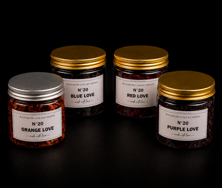La Rainbow Collections de R-Maine Perfumes est une célébration audacieuse et joyeuse de la diversité — quatre compositions de bois précieux soigneusement sélectionnés et colorés, réunies sous un même souffle créatif. Orange, Bleu, Rouge, Violet — quatre humeurs, quatre énergies, quatre invitations à ressentir autrement.